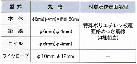 特殊ポリエチレン被覆により、耐食性、耐磨耗性、耐候性に優れ、従来製品(亜鉛めっき品)に比べ耐久性が格段に向上しました。 - 強度