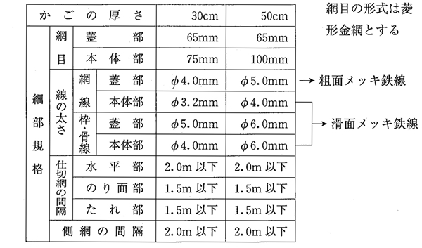 鉄線かごの構造は下表とする。