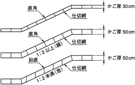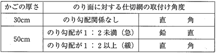 ただし,かご厚50cmで,のり勾配が1:2より急な場合は,取付け角度を鉛直とする。